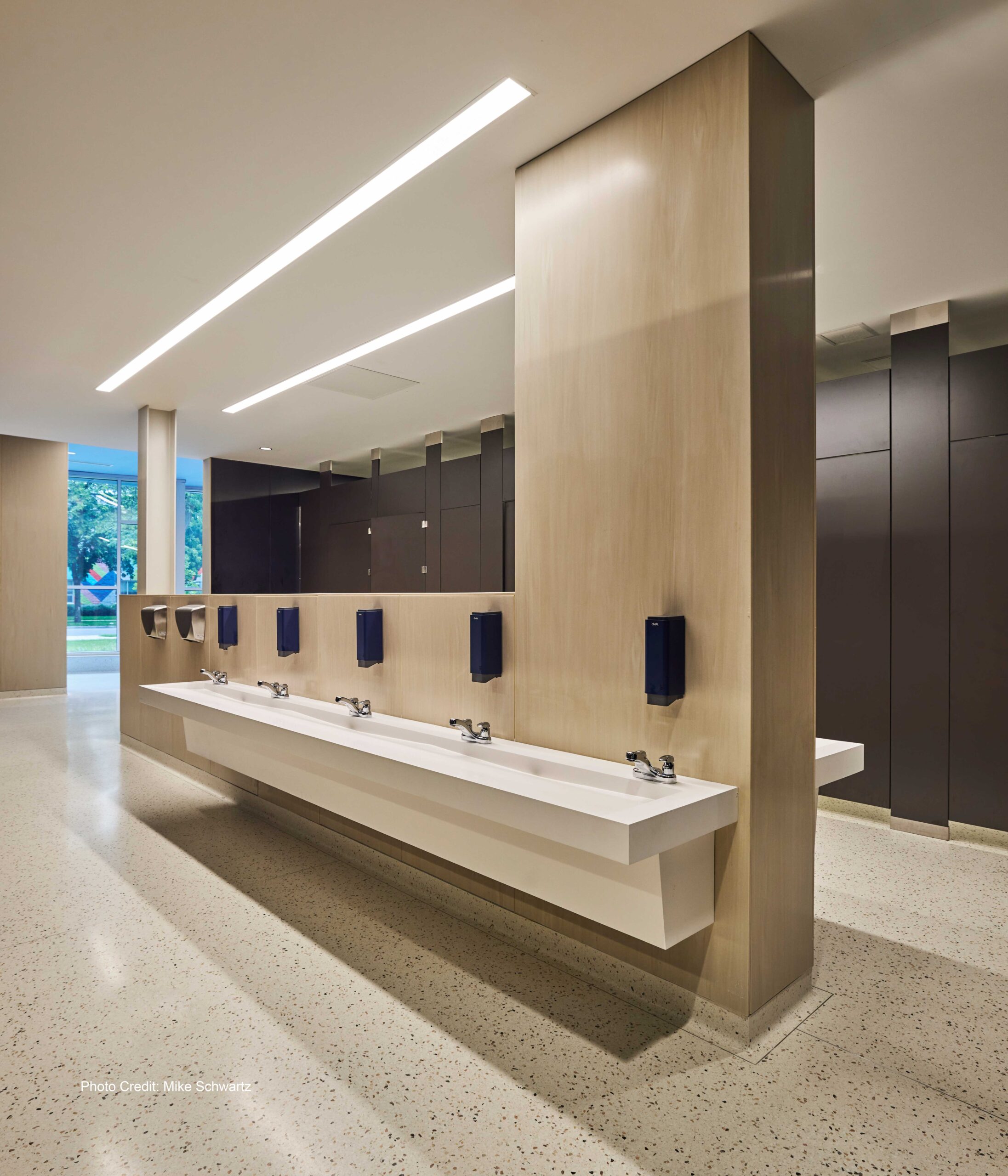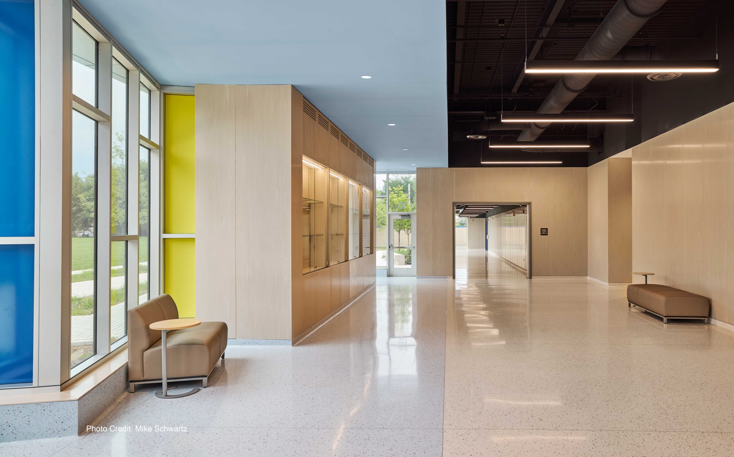 the existing building include new elevator and other accessibility upgrades, reconfigured boys/girls bathrooms, all-gender locker